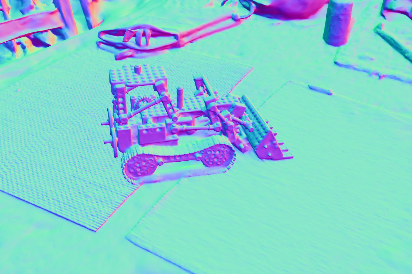Learning progress of color, normal and depth from random initialization to 15k iterations in 5 minutes.