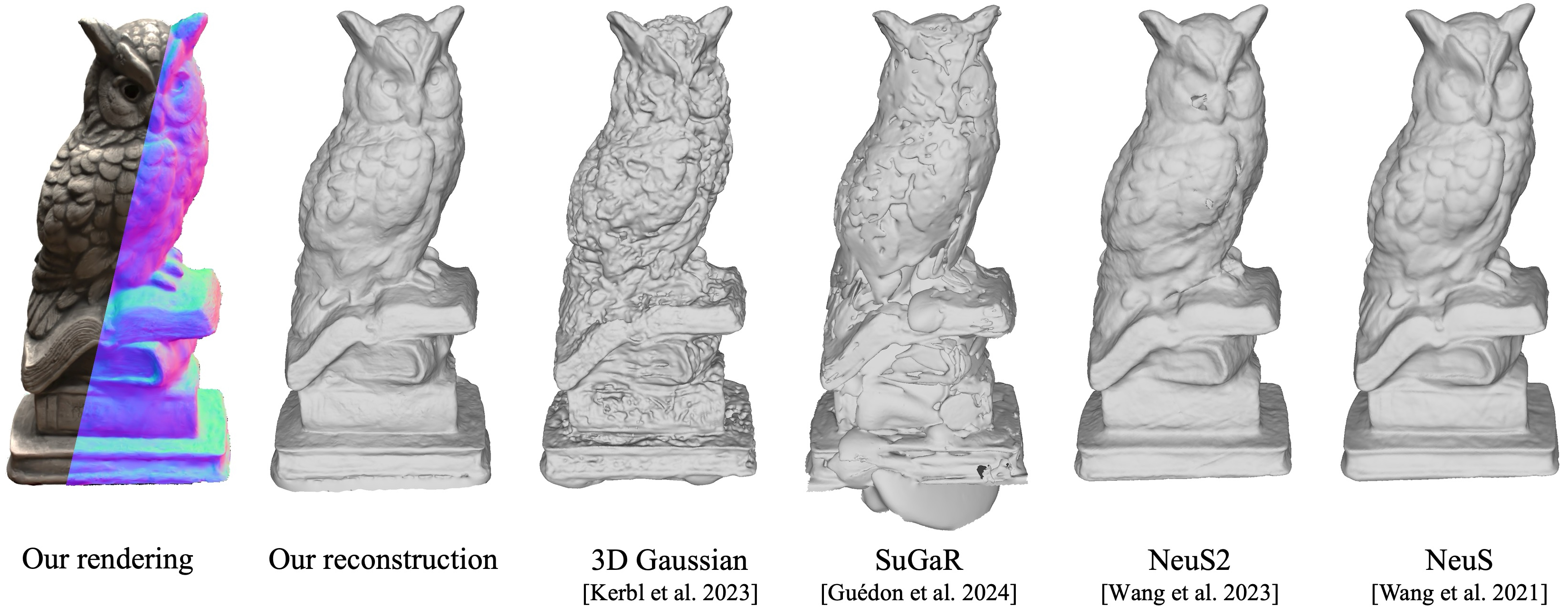 [Huang et al. 2024] 2DGS: 2D Gaussian Splatting for Geometrically Accurate Radiance Fields.